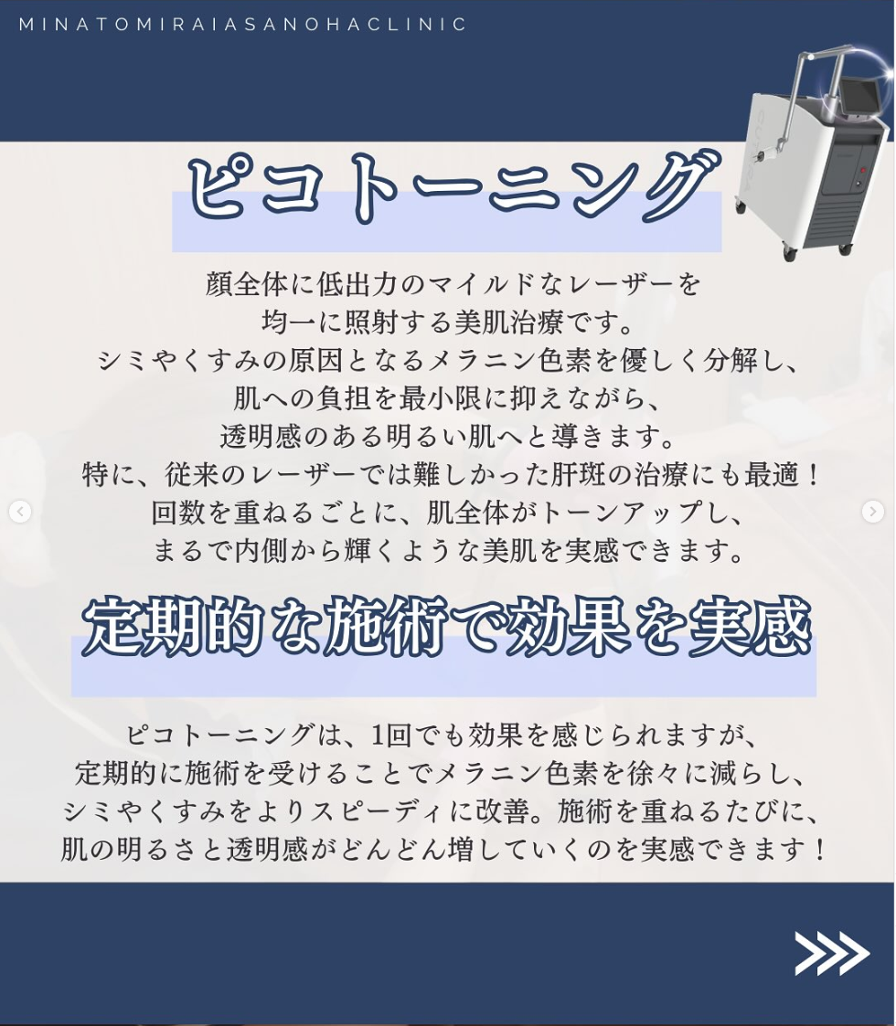 1. ピコトーニング~シミ・くすみ撃退の定番~