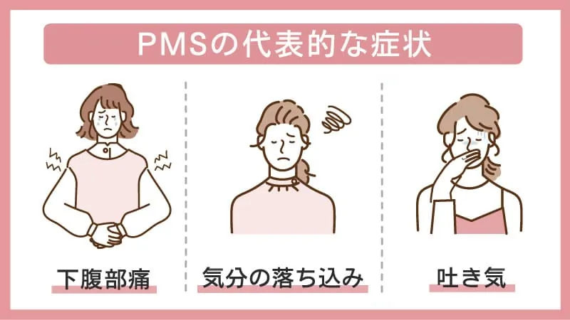 PMS(Premenstrual Syndrome:月経前症候群)は、生理前に現れる心と体の不調の総称です。生理が始まると症状がスッと消えるのが特徴で、「気のせい?」と思いがちですが、決して甘えではありません。主な症状は大きく2つに分けられます。