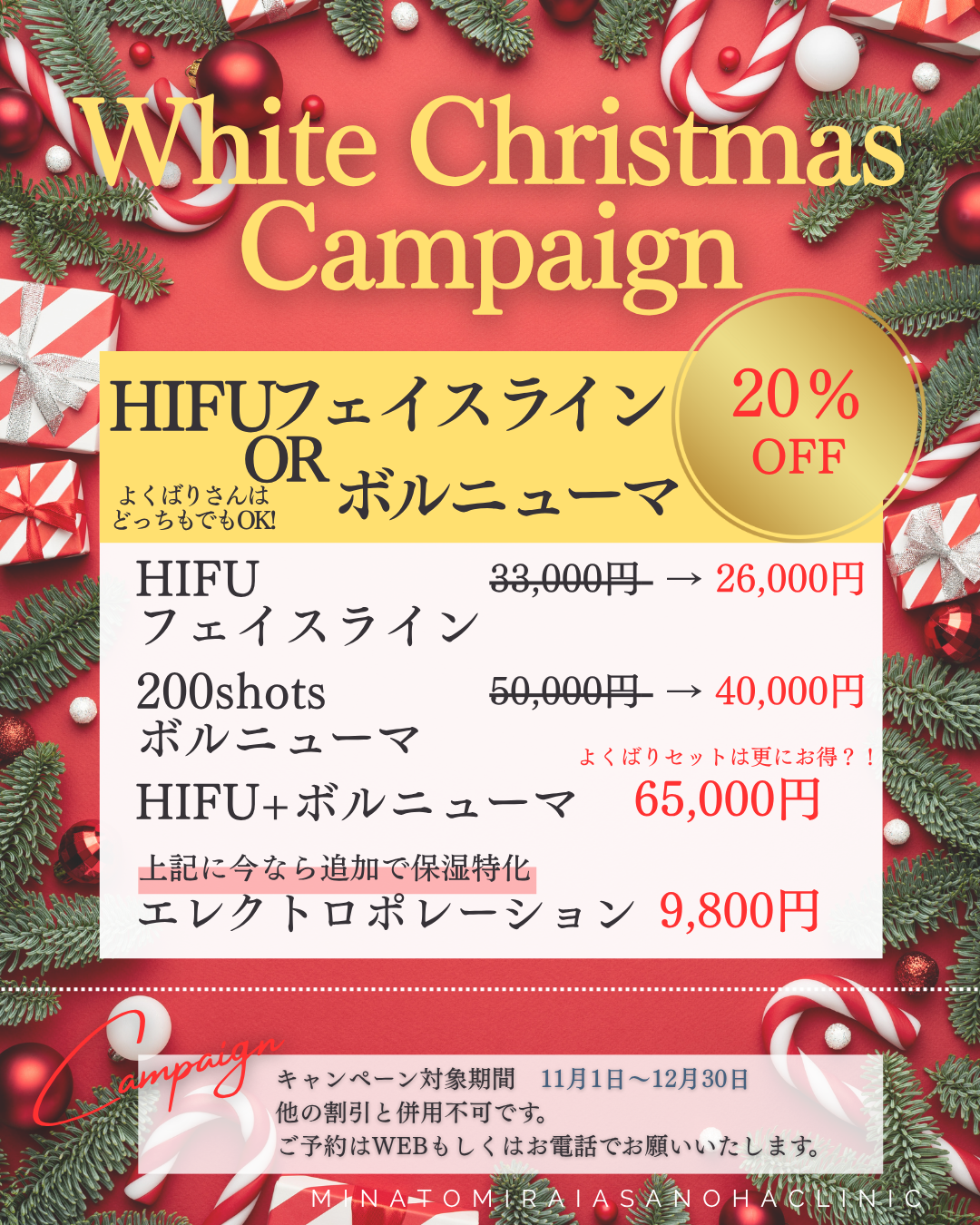 当院の最新情報の一覧 2025/10/22 公開日は、2025年10月22日です。 【11月・12月キャンペーンのお知らせ】リフトアップで小顔爆誕! 記事タイトルは、【11月・12月キャンペーンのお知らせ】リフトアップで小顔爆誕!です。 2025/10/22 公開日は、2025年10月22日です。 【11月・12月キャンペーンのお知らせ】ポテンツァが今お得?! 記事タイトルは、【11月・12月キャンペーンのお知らせ】ポテンツァが今お得?!です。 2025/10/14 公開日は、2025年10月14日です。 【スタッフブログ】「内側と外側から輝く肌へ!美容医療とサプリの最強タッグ」 記事タイトルは、【スタッフブログ】「内側と外側から輝く肌へ!美容医療とサプリの最強タッグ」です。