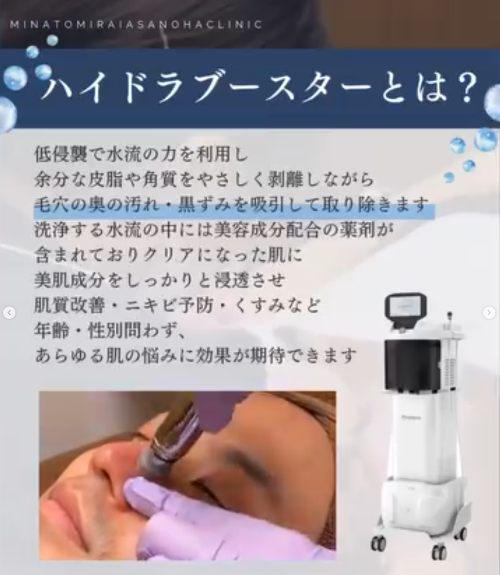 ハイドラブースターは、肌表面だけでなく毛穴の奥までアプローチ。黒ずみの原因となる角栓や酸化した皮脂をしっかり吸引し、つるんとした肌に導きます。