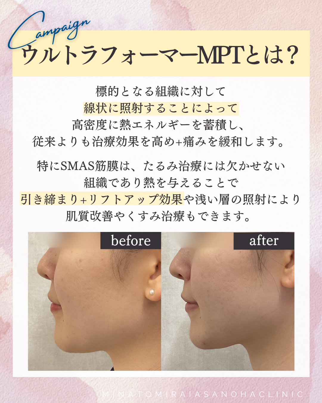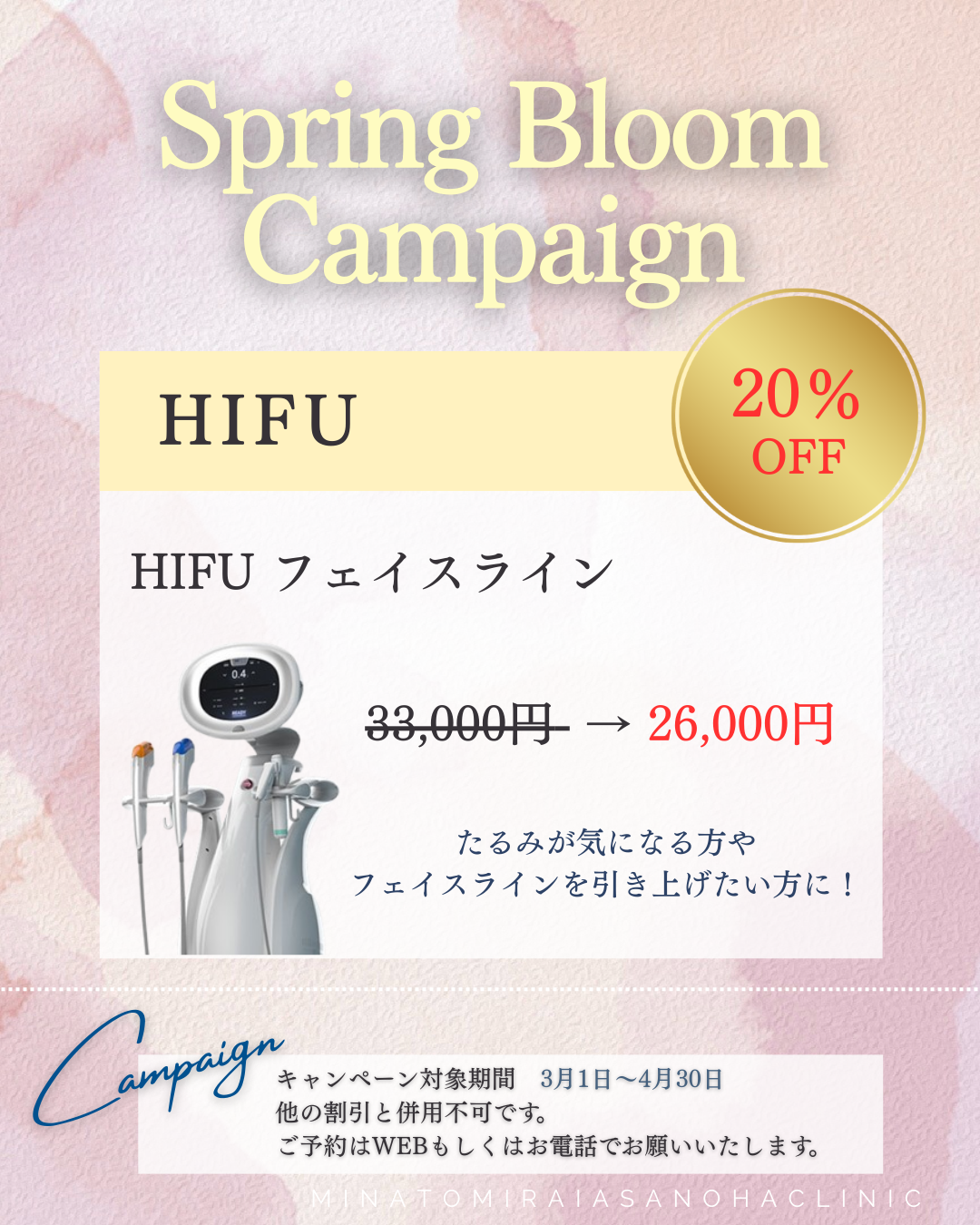 【Spring Bloom キャンペーンのお知らせ】たるみ改善!キャンペーンHIFUですっきり小顔に