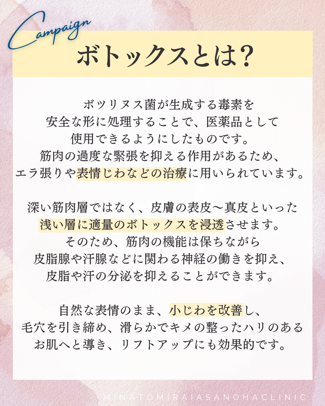 【Spring Bloom キャンペーンのお知らせ】小じわ全滅?ボトックスで即改善!キャンペーンでお得に施術 記事タイトルは、【Spring Bloom キャンペーンのお知らせ】小じわ全滅?ボトックスで即改善!キャンペーンでお得に施術です。