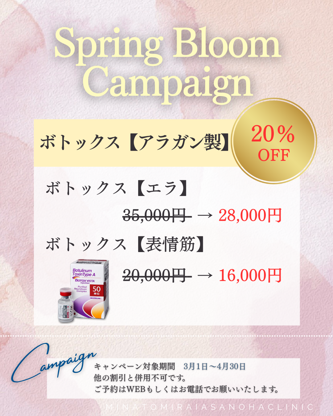 【Spring Bloom キャンペーンのお知らせ】小じわ全滅?ボトックスで即改善!キャンペーンでお得に施術